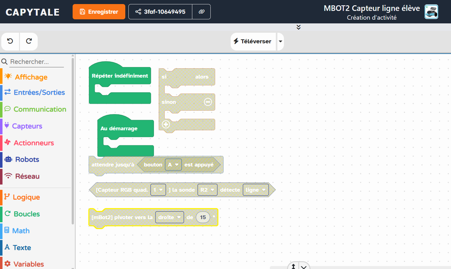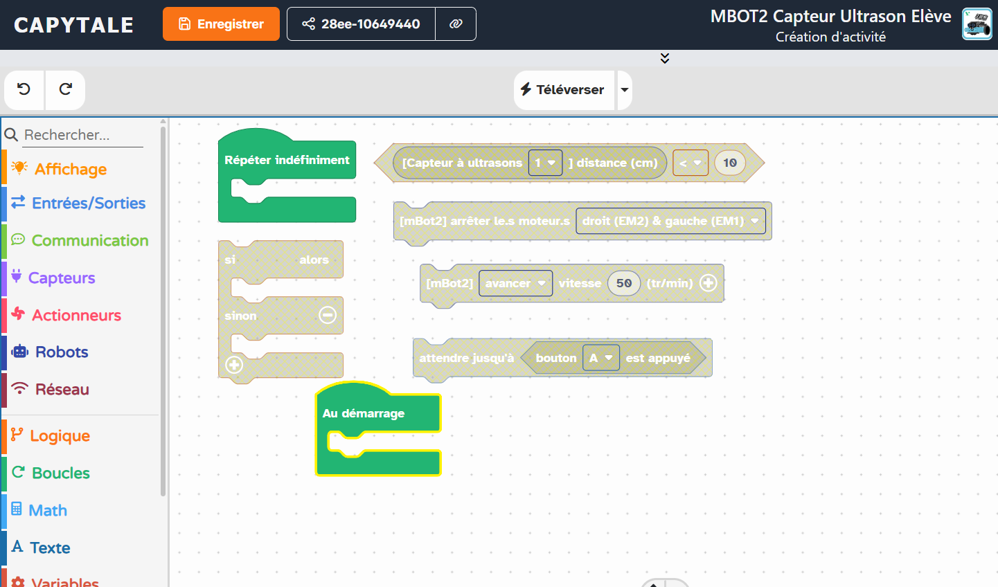 Adapter le programme de simulation aux capteurs et actionneurs choisis comme solutions techniques sur le robot. |